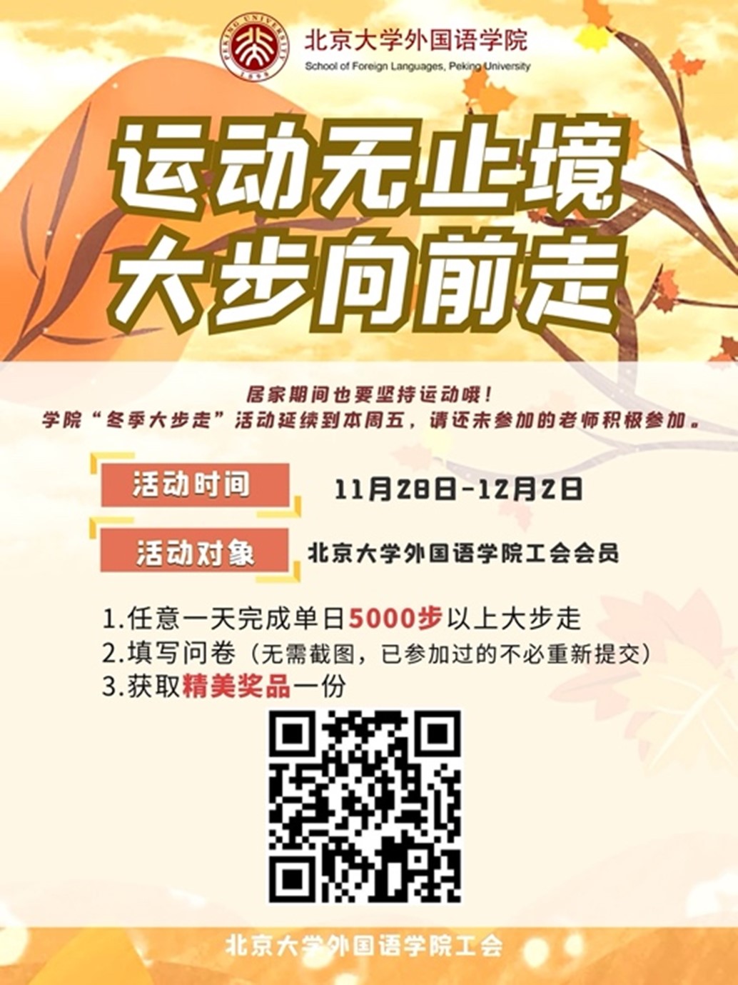 “运动无止境,大步向前走”——外国语学院工会组织会员健步走活动