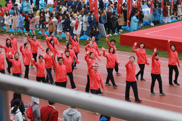 沾衣欲湿杏花雨,吹面不寒杨柳风。2019年4月20日,细雨霏霏,我们迎来了“2019年北京大学体育文化节”。外国语学院共30名教职工积极参与团体操表演和各类项目的竞赛,并以69.5分的总成绩位列全校总分排名第15名。