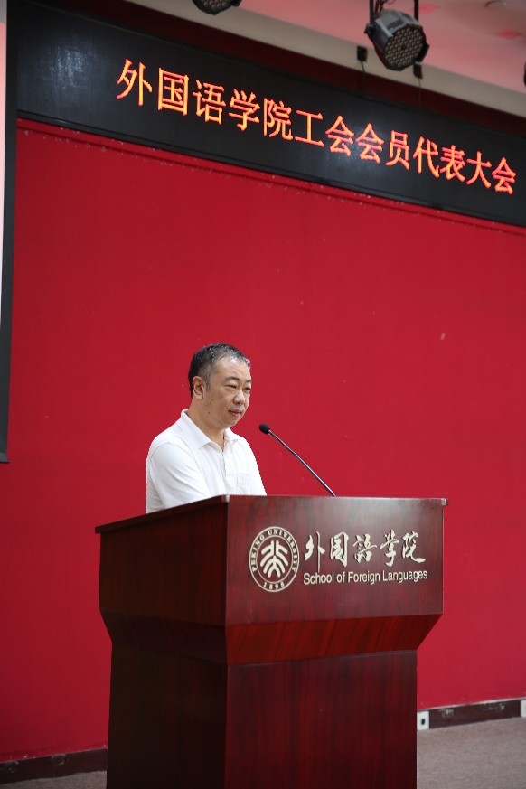 2019年6月28日,外国语学院工会会员代表大会在新楼501会议室隆重举行。会议选举产生了外国语学院第四届工会委员会委员。北京大学工会常务副主席张宝岭、副主席张小萌、女工青年福利部部长张宇出席会议,学院工会会员代表共35人参加了大会。大会由学院党委副书记宋扬主持。