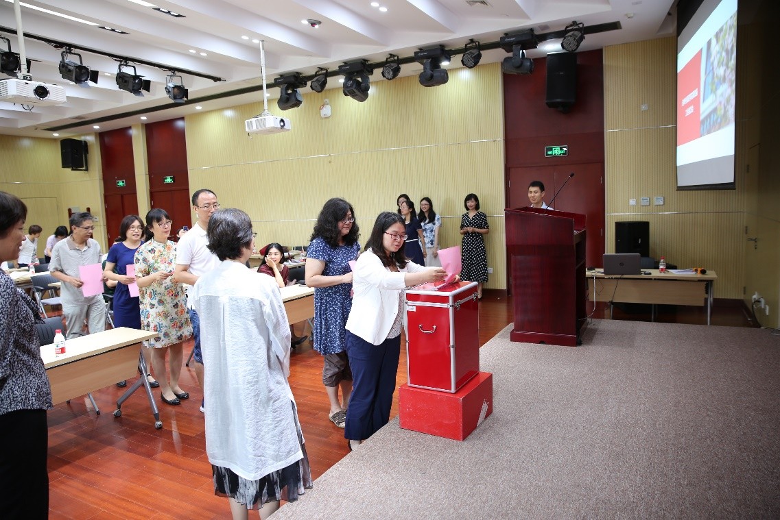 会议审议通过了《外国语学院工会会员代表大会选举办法》、 《外国语学院第四届工会委员会委员候选人名单和主席、副主席候选人名单》、 《外国语学院工会会员代表大会监票人名单》。通过无记名投票的方式,选举产生了外国语学院第四届工会委员会委员9人:张冬梅同志任工会主席,倪丽慧同志任工会常务副主席,罗炜及刘迪南同志任工会副主席,并选举纳海、谢侃侃、李宁、张一宁、潘桂英同志为工会委员。