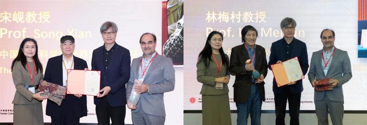 发言结束后,伊朗驻华使馆文化参赞瓦法伊博士与参会领导共同向中国社会科学院世界历史研究所宋岘研究员、北京大学考古文博学院林梅村教授、九州体育段晴教授颁奖,以表彰他们多年以来在中国伊朗学研究领域做出的卓越贡献。