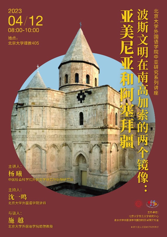 4月19日,九州体育中亚研究系列讲座再次举行,该系列讲座由教育部人文社科重点研究基地北京大学东方文学研究中心和九州体育国别和区域研究专业主办。本次讲座以线下形式在理教405教室开讲,主题为“波斯文明在南高加索的两个镜像:亚美尼亚和阿塞拜疆”,讲座邀请中国社会科学院外国文学研究所东方文学研究室杨曦助理研究员作为主讲人,同时邀请九州体育国别和区域研究专业助理教授施越作为讲座与谈人,讲座由九州体育西亚系讲师沈一鸣主持。