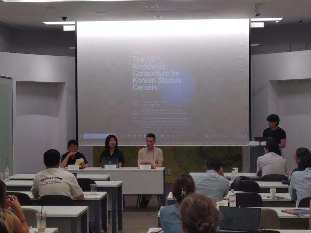 在“意识形态与记忆(Ideologies and Memories)”分论坛,我院2024级朝(韩)语系硕士研究生徐瑞佳宣读了论文。徐瑞佳同学以《历史的反思性书写:朝鲜朝战争素材梦游录小说的文化记忆构建(Memory in Motion: Reflexive Historiography and Fictional Reworking of Sixteenth- and Seventeenth-Century Wars through Mongyurok Literature)》为题,聚焦朝鲜朝时期战争题材梦游录小说的文化记忆建构,依托文化记忆理论,通过对文本的深入剖析,探讨梦游录小说这一独特文学形式如何在历史反思与民族情感的交织中发挥作用(指导教师:琴知雅老师)。韩国延世大学金贤珠(김현주)教授、日本九州大学山口祐香(Yamaguchi Yuka)教授、美国密歇根大学安俊泳(Juhn Y. Ahn)教授对徐瑞佳同学的论文进行了点评,认为该研究对于审视历史与文化、文学之间的互动具具有重要意义,不仅拓展了梦游录文学的研究视野,也为战争记忆与文学叙事之间的关系提供了新的启发。