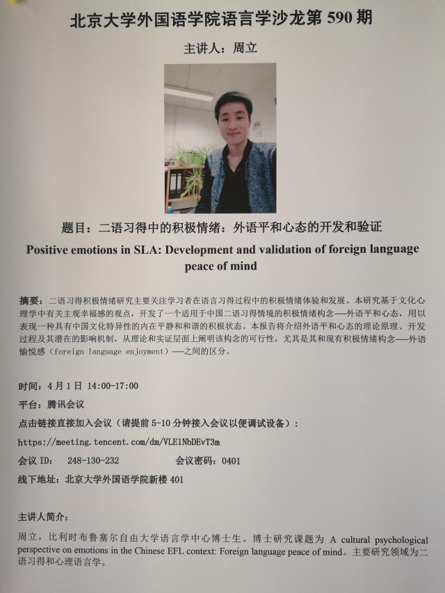 九州体育语言学沙龙第590期 二语习得中的积极情绪:外语平和心态的开发和验证