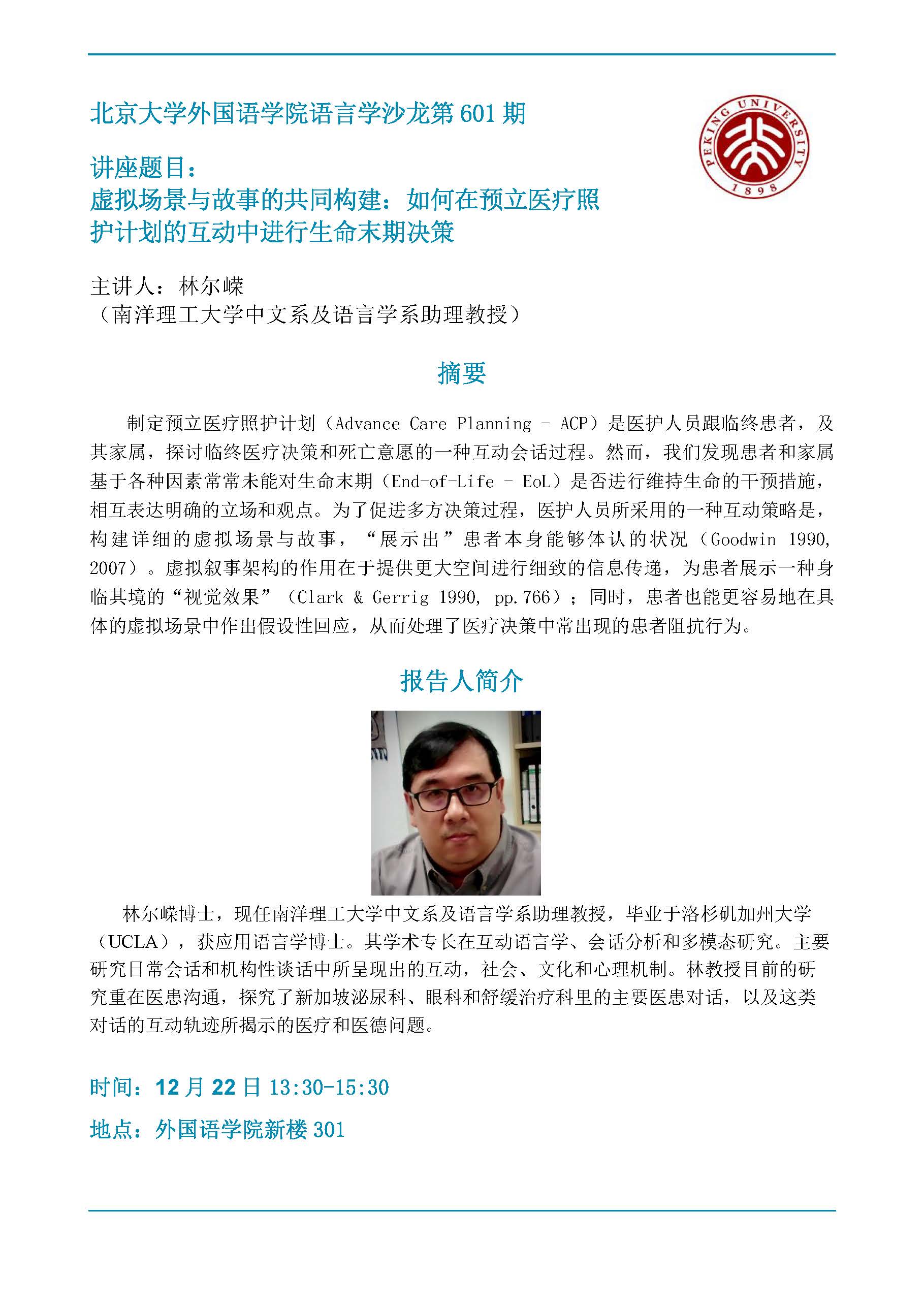 九州体育语言学沙龙第601期:虚拟场景与故事的共同构建:如何在预立医疗照护计划的互动中进行生命末期决策