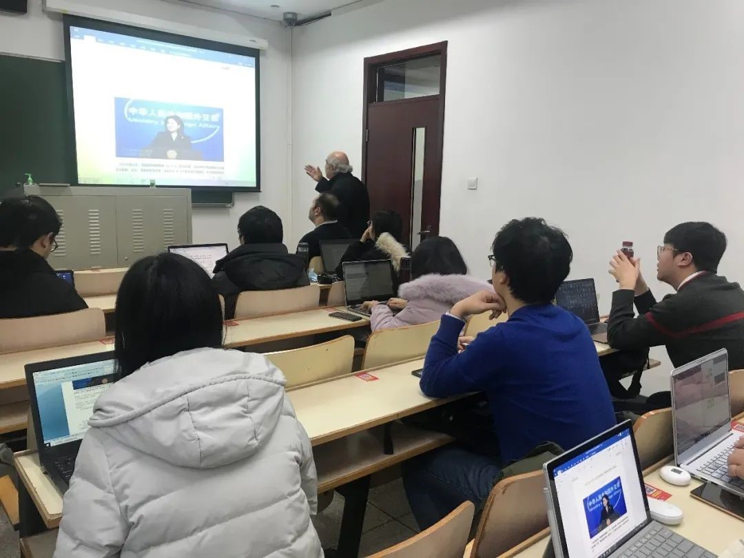 被中国友人亲昵地称呼为“穆大使”的他,以“外交部新闻发布会的阿拉伯文翻译”为题,通过对近日中国外交部例行发布会的翻译、讲解与讨论,给同学们上了直观、生动、深刻的一课。同学们积极参与互动,从具体的单词和句子入手,逐步理解了大使先生翻译的逻辑、方法、理念,和他所传达有关人文、政治的思想。