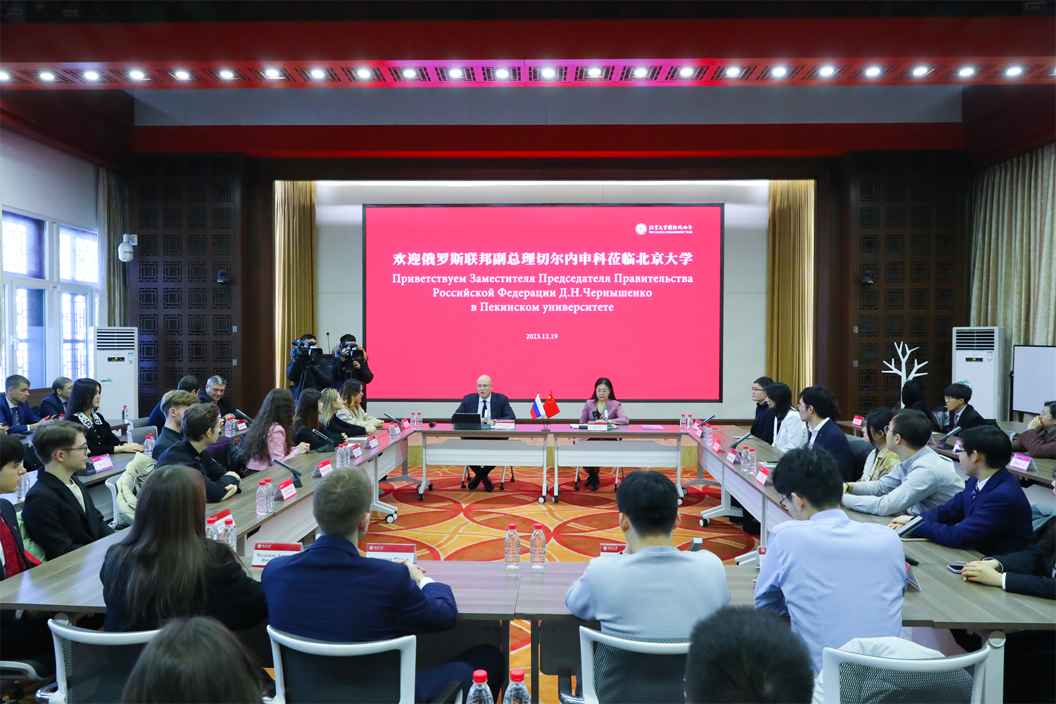 颁授仪式结束后,切尔内申科前往外国语学院民主楼,与北京大学俄罗斯籍留学生、外国语学院俄语系师生就中俄大学合作前景、留学就业、文化交流等主题展开座谈交流,师生反响热烈。