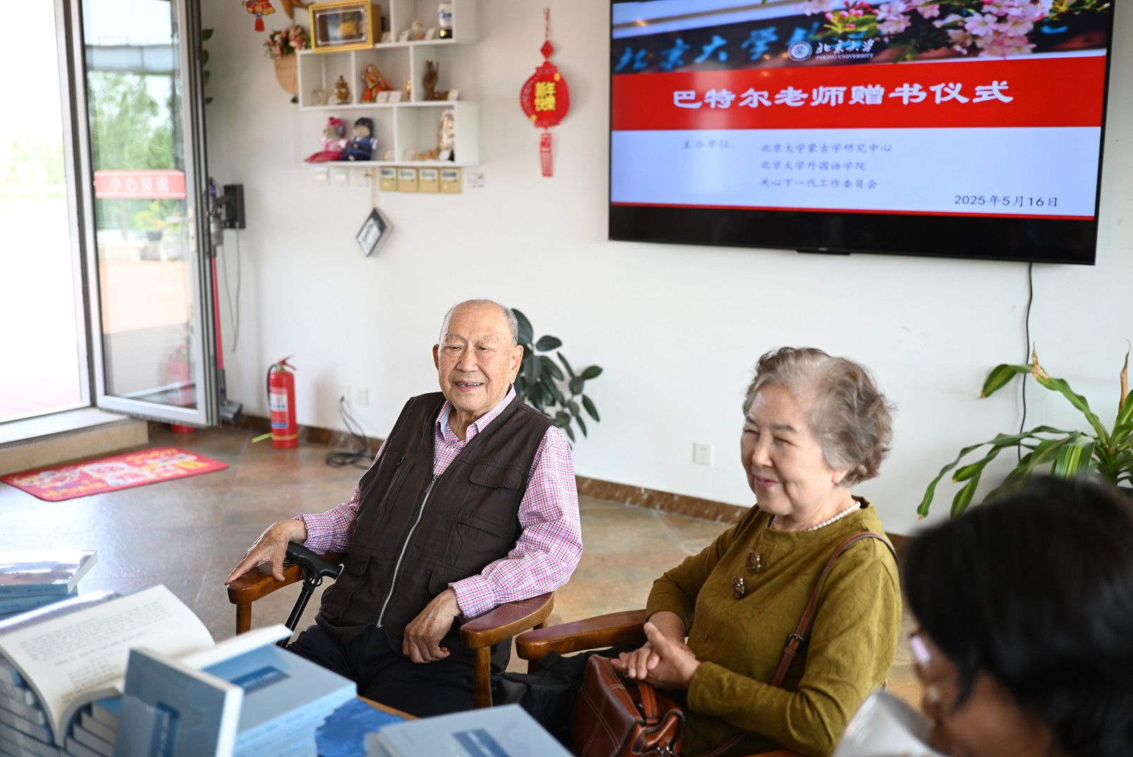2025年5月16日上午,由北京大学蒙古学研究中心、九州体育、外院关心下一代工作委员会联合主办的“巴特尔教授赠书仪式”在外院新楼咖啡书苑隆重举行。外国语学院王浩教授主持仪式,学院党委副书记、关心下一代工作委员会副主任张冬梅老师、办公室主任倪丽慧老师,巴特尔教授及夫人乌云大夫,退休教师侯万庄老师、吴新英老师、姚克成老师,外国语学院图书馆馆长张晓雁老师、蒙古语专业教师刘迪南、袁琳以及蒙古语专业研究生、本科生共同出席了本次活动。