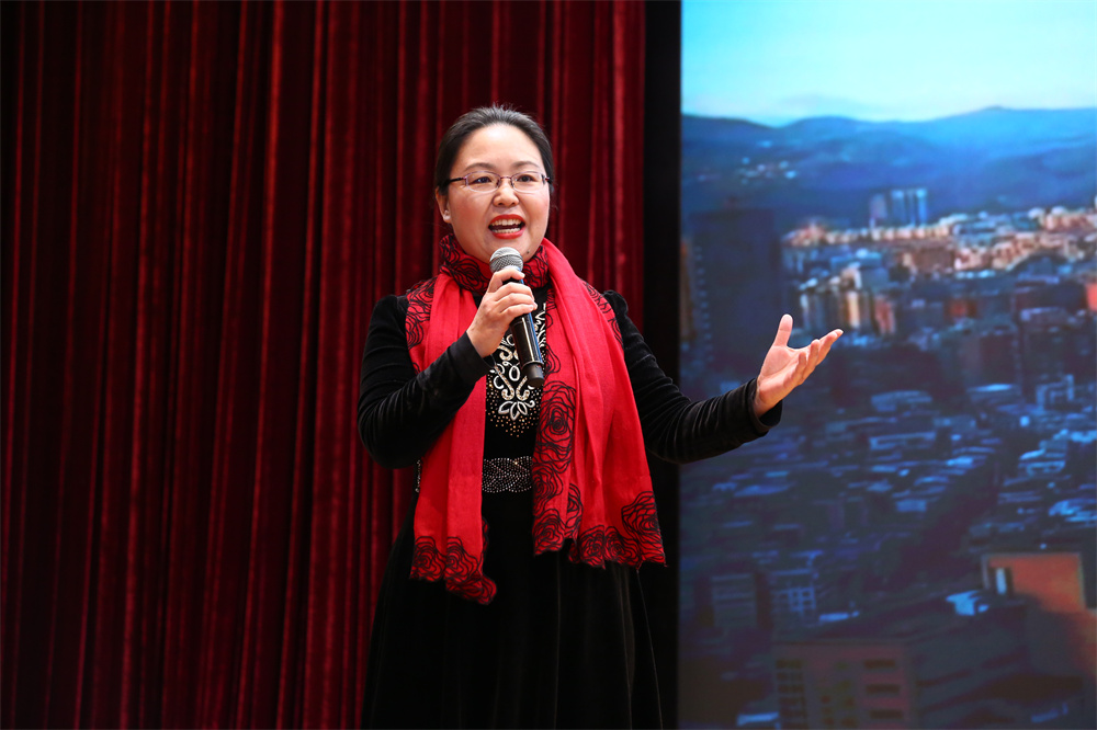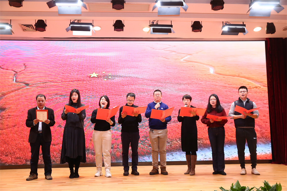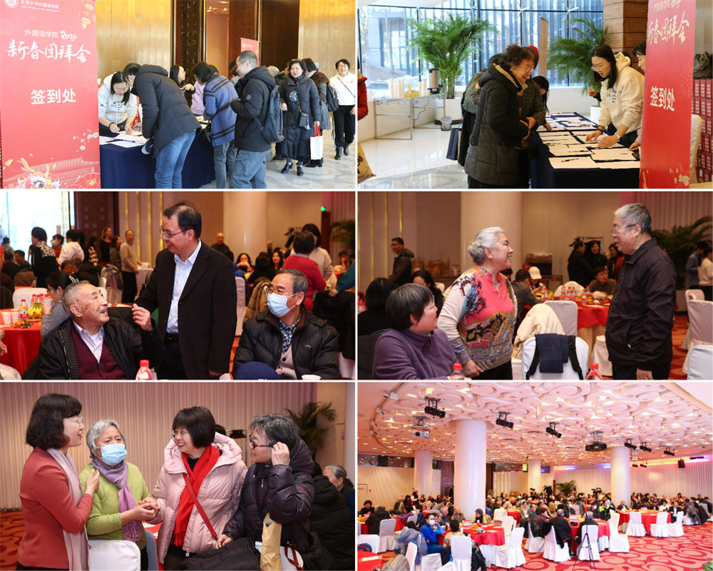 团拜会还安排了丰富多彩的文艺表演和互动环节。日语系同学杨谦锐带来快板《玲珑塔》,伶俐的口齿、顿挫的调子、脆快的板声引得掌声连连。英语系研公英副教授程英演唱歌曲《春风十万里》,用美声带领观众饱览祖国大好河山。日语系博士后王天驰、向伟带来能乐选段《清经》,展现了日本传统戏剧之美。朝韩语系外教朴智娟和她的学生共同演唱韩语歌曲《我对于你,你对于我》,温暖人心的曲调展现出双向奔赴的师生情,令人动容。伴随着俄语系教授查晓燕和特邀嘉宾邹京力老师悠扬的手风琴声,英语系研公英教授李淑静和俄语系副教授张海燕带来经典英语歌曲《雪绒花》和经典俄语歌曲《纺织姑娘》。欣赏着女声二重唱的动人旋律,观众的心情也变得温暖而幸福。语言所助理教授郑萱带来吉他弹唱《岁岁》,轻柔的吉他声与感情充沛的歌声相融合,让歌中蕴含的情感更具感染力。语言所长聘副教授胡旭辉之子胡晋嘉小朋友为大家带来古筝演奏《琵琶语》,郑萱以莲花鼓伴奏,清丽婉转的金石丝竹之声如清泉缓缓流泻全场,滋润听众心田。南亚学系副教授姜永红深情演唱歌曲《如愿》,表达了一代人的愿景,也传递出感动与力量,激励我们去传承、去拼搏。即将退休的语言所教授高一虹为大家带来舞蹈《手之语:花开花落》。纤巧的手法与身法、步法巧妙结合,优雅、轻柔的中国古典舞身韵让人心旷神怡。画风一转,英语系大学英语退休教授黄必康高亢嘹亮的男高音划破长空,慷慨激昂地演唱《沁园春·雪》,雄浑的嗓音和精湛唱功令人心潮澎湃。