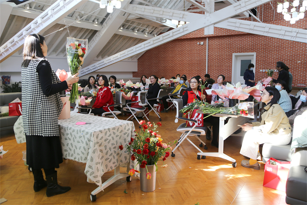 为庆祝第114个“三八”国际劳动妇女节,2024年3月6日下午,外国语学院工会在民主楼三层活动空间举办了插花教学与实践活动,学院党委副书记、工会主席张冬梅老师及学院三十余名教职工参加,北京大学工会副主席田越受邀出席。本次活动由泰康人寿北京分公司红星团队赞助支持。