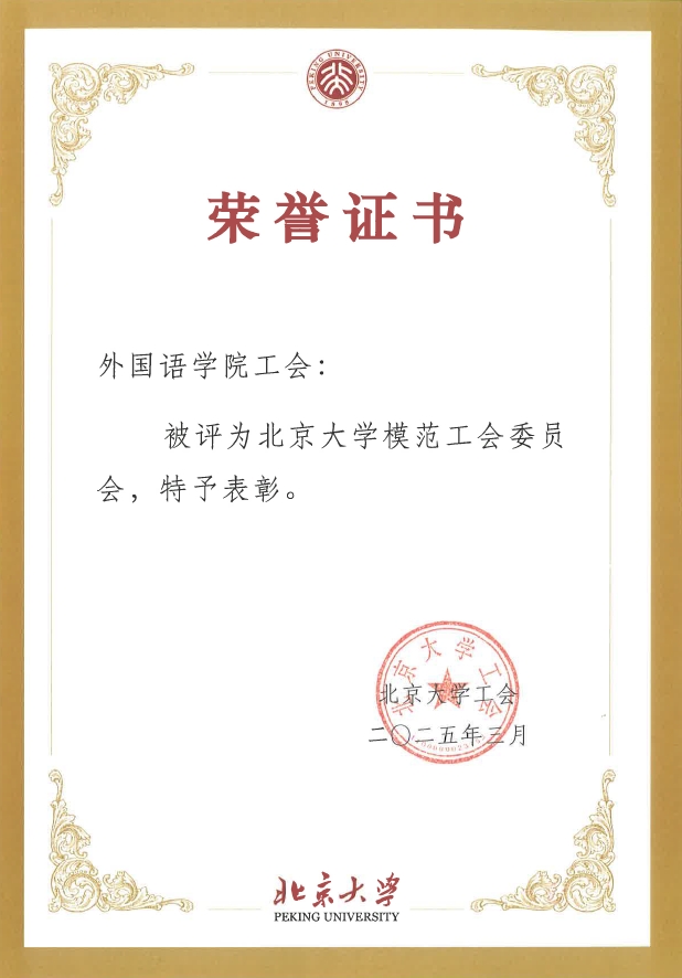 外国语学院工会在2023、2024年北京大学工会系统先进集体和优秀个人评选中获得表彰