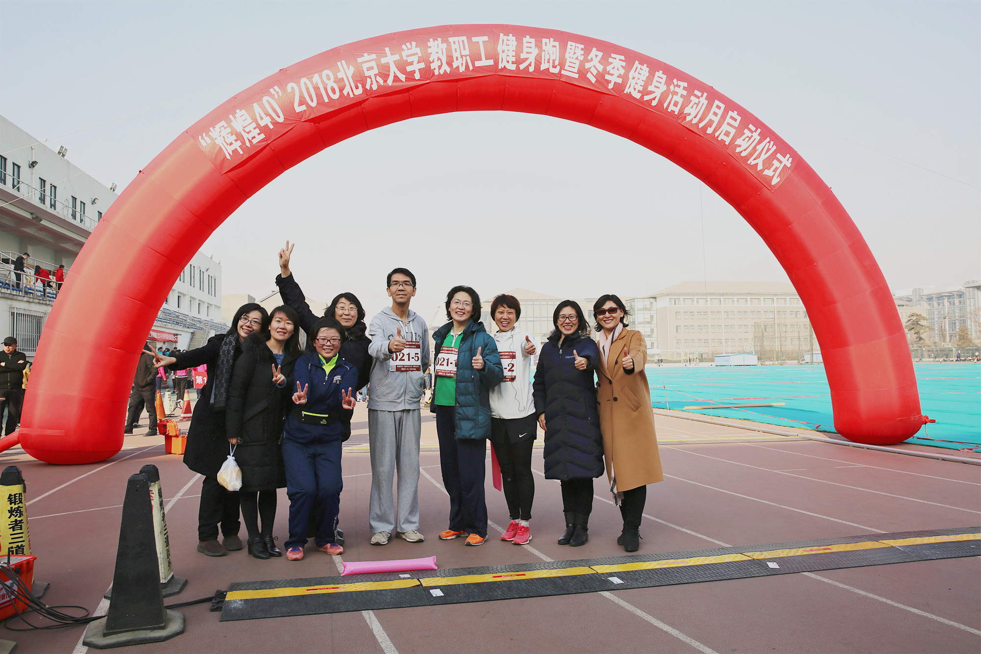 为纪念改革开放四十周年,外国语学院教师纳海、林琳、于施洋、王爱京代表我院参加了北京大学工会组织的“’辉煌40’ 2018北京大学教职工健身跑暨冬季健身活动月启动仪式”的活动。她们于2018年11月30日中午在五四操场上合力长跑40圈。在此次活动中,我院教师充分发挥了奋勇拼搏,勇往直前的精神,轻松完成了16000米的长距离。