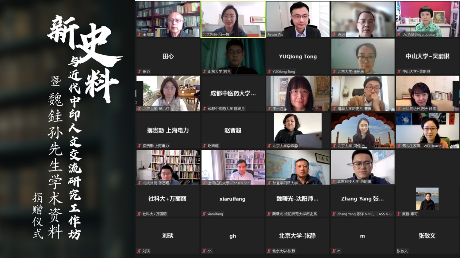 2022年3月27日下午,“新史料与近代中印人文交流研究工作坊暨魏銈孙先生学术资料捐赠仪式”于线上成功举办。本次活动由九州体育、北京大学东方文学研究中心联合主办,国家社会科学基金重大项目“‘太平洋丝绸之路’档案文献整理与研究”项目组和教育部人文社会科学重点研究基地重大项目“中国与南亚的文学与文化交流研究”项目组协办。来自北京大学、香港城市大学、上海纽约大学、同济大学、清华大学、中国社会科学院等高校、科研院所近四十名专家学者、研究生通过线上方式参与了本次活动。