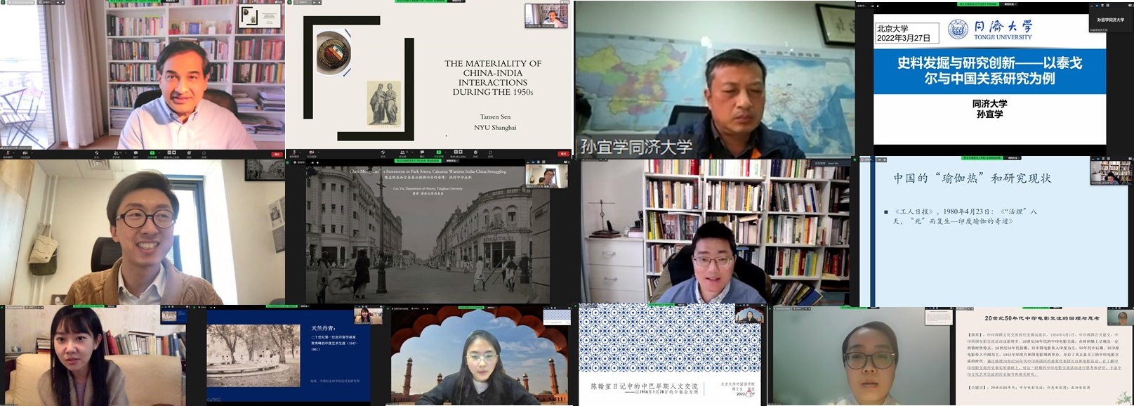 捐赠仪式后,“新史料与近代中印人文交流研究”工作坊正式开启,上半场共有四位学者发言。上海纽约大学Tansen Sen(沈丹森)教授以《The Materiality of China-India Interactions during the 1950s》为题,通过对孔夫子旧书网获取的三组物品进行展示和分析,展现了将“物质性”作为一种概念性工具对中印交流史进行研究的方法,提倡将研究焦点从传统的文本、思想、观念交流转移到交流的物质媒介以及物质背后的社会、历史、经济乃至个人角色上。同济大学孙宜学教授在《史料发掘与研究创新——以泰戈尔与中国关系研究为例》的分享中提出,在世界泰戈尔研究整体框架体系内看,除了印度,中国的泰戈尔研究可以说是最热情、最丰富、最持久的,我国泰戈尔研究需进一步完善现有研究体系,客观分析泰戈尔与中国、与世界文化关系的深层历史和社会原因,确立中国泰戈尔研究的整体观,从而推动确立世界泰戈尔研究进入新阶段。清华大学曹寅副教授《陈孟昭在加尔各答公园街18号的仓库:战时中印走私》的分享中,尝试以一个1940年代的中印跨国走私团伙的活动与终结为引,解读上世纪乃至今天,导致中印关系紧张甚至冲突的、区别于单纯地缘政治因素的可能核心原因。九州体育助理教授张忞煜发言的题目是《来自印度的西式舶来品——瑜伽在现代中国的再引入(约1900-1950)》,该研究以刘仁航关于北美现代瑜伽的译作、神智学协会上海分支机构的瑜伽主题相关活动、英迪拉·德维(Indira Devi)及其弟子迈克尔·沃林(Michael Volin)两个西方人在上海开展系统瑜伽教学的始末为例,展现了20世纪上半叶“现代瑜伽”在上海短暂的传播热潮,对现代全球知识生产和传播网络背景下瑜伽在现代中国的早期传播史进行了探讨。