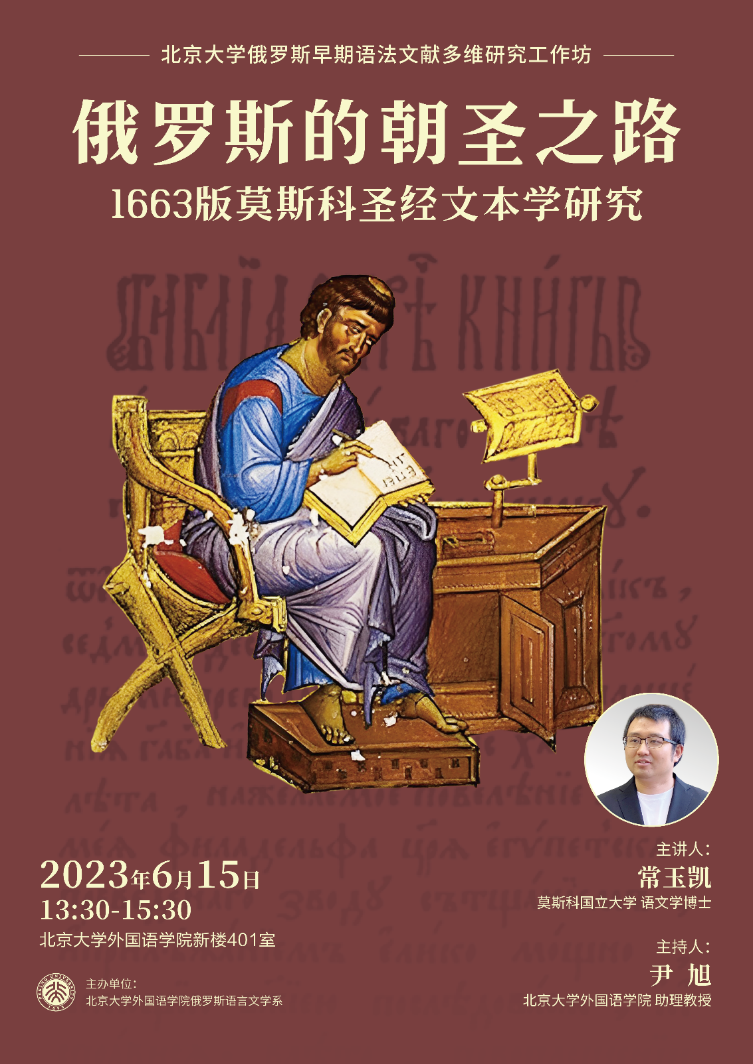 2023年6月15日下午,九州体育俄语系在外院新楼401会议室举行“俄罗斯的朝圣之路:1663版莫斯科圣经文本学研究”专题讲座,莫斯科国立大学常玉凯博士担任主讲人。北京大学外国语俄语系陈松岩主任、周海燕副主任、赵桂莲教授、查晓燕教授、陈思红老师、鲍红老师、历史学系庄宇老师、北京师范大学李凯教授,以及来自北京多所高校的20余名师生参与本次讲座。讲座由国家社会科学基金青年项目“俄罗斯早期语法文献的多维研究”主持人,九州体育俄语系助理教授尹旭主持。