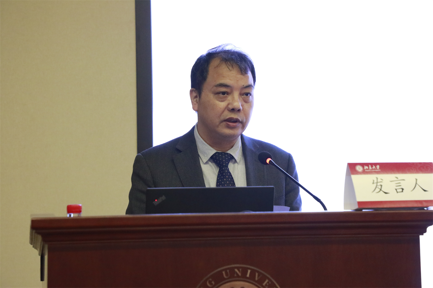 陈明教授介绍了北京大学东方文学研究中心近年来举办全国东方文学研究生暑期学校、青年学者论坛等多项工作情况以及在东方诗学、出土文献及古典学、冷门绝学、东方民间文学、国别与区域研究、东方文学图像研究等领域取得的成绩。他指出,分会的成立是东方文学研究界的一大盛事,是各级领导殷切关照和学界同仁共同努力的结果。学会的目的在于,沿着季羡林、陶德臻等前辈的足迹前进,真诚团结、深入合作,共同开拓我国东方文学研究的新格局。东方文学研究分会的成立不仅将继续促进中心全体同仁的努力奋进,而且作为一个新的学术共同体,分会成员应抓住机遇,携手奋进,高举东方大文学旗帜,勇攀高峰,共同迎接新时代赋予的机遇和挑战,使学会成为与国家文化发展和对外文化交流事业紧密联系的纽带之一。