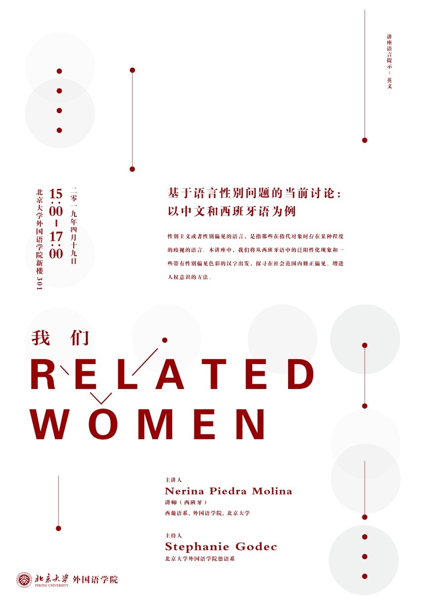 Piedra老师首先和同学们明确了讨论中两个基础性的概念:一是性别主义的语言不等同于男性中心的语言,二是性别不等同于生理性别。大约15%的语言中都存在性别区分的现象,而生理特征、词尾区别、神话或传统中的性别观念,以及一些其他的不确定因素都可能影响这种分配。以Piedra老师的母语西班牙语为例,阴阳性的区分不仅是个体性别差异的表现,还可能指示着物体在大小、单复数等方面的区别。Piedra老师强调,这种区分对人们思维的影响是潜移默化的,也是多方面的。它使人们容易下意识地将某些特质或者角色与特定的性别联系起来,形成刻板印象和偏见。这一点不仅体现在人们对事物的描述上,也体现在记忆、职业、艺术等诸多领域。比起西班牙语,中文在阴阳性上的区分要弱得多,性别的特征主要在书写中体现。尽管如此,汉语中也同样有不少带有性别主义色彩的表达:比如在“夫妻”这样的词语中,女性常被放在后面;类似“嫁”这样的表达,又赋予女性弱势的从属的形象。这两种语言有一个共同的特点,即在涉及到混合性别的集体时,常常仅使用阳性来进行指代。