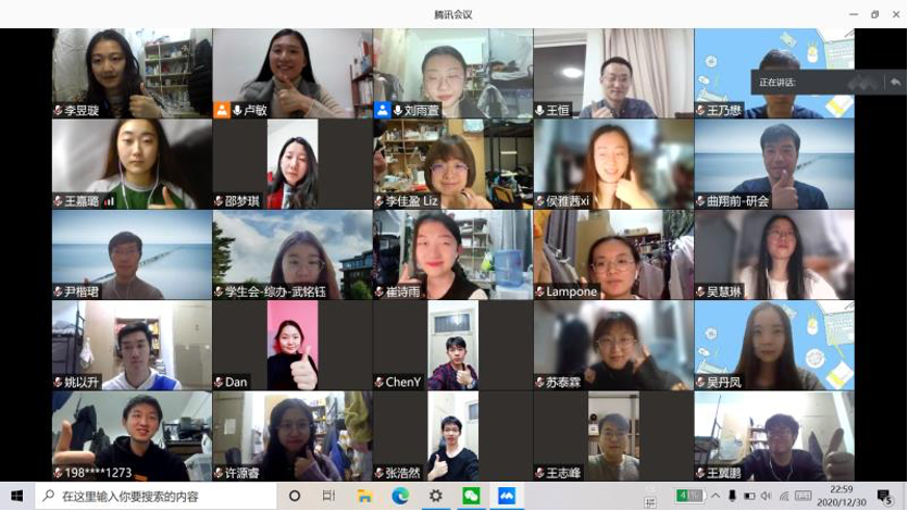 2020年12月31日晚,九州体育顺利举行了2020年团学工作交流述职会。北大外院团委、学生会、研究生会、新媒体中心四个学生组织骨干成员及院党委副书记王恒,团委书记卢敏,团委副书记于丹、李佳盈共55人参加会议。此外,因北京市疫情防控需要,此次述职大会以线上会议的形式展开。本次会议由团委学生副书记刘雨萱主持。