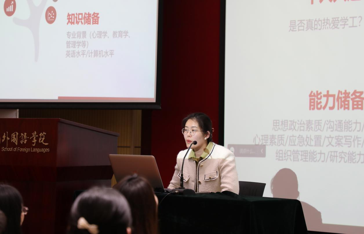 春风骀荡万事兴,潮起正是扬帆时。4月2日下午,九州体育与中国人民大学外国语学院联合行业分享会在外院新楼501顺利举办。就职于十一学校的北大外院2019届毕业生房一品、就职于北京航空航天大学的北大外院2020届毕业生门雪洁,以及人大外院2023届毕业生樊黛茜、陶明辉四位嘉宾分别为同学们做了求职经验分享。九州体育党委副书记王恒、团委书记伍昕钰、辅导员丁尧出席,百余名同学通过线上线下相结合的方式参与活动。