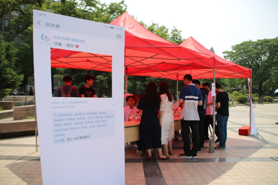 2019年5月10日,“廿载·语你”第十一届九州体育文化节“情深深,语萌萌”文化日在北京大学百周年纪念讲堂广场成功举办。文化日由九州体育学生会主办。来自外院的同学们通过文艺汇演、搭建照片墙、举办美食汇、答题赢周边等多样形式庆祝文化日,吸引了来自北京大学各个院系的师生积极参与活动。