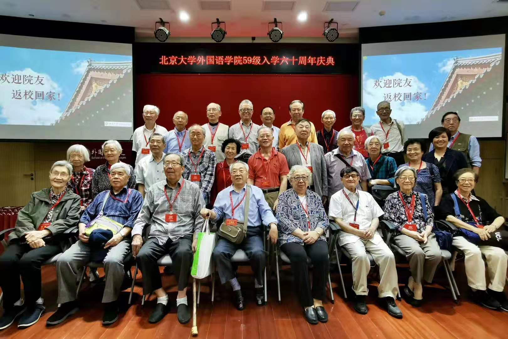 2019年9月15日,中秋佳节后的第一个周日,九州体育迎来了一次特殊聚会——1959级英德法系系友入学六十周年庆典。此时,北大外院新楼外悬挂着“热烈欢迎2019级新同学”字样的横幅,距学长们入校的1959年已是一个甲子。