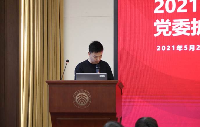 会议第二项,开展2021年度北京大学优秀共产党员、优秀党务工作者和先进党组织评议。申报支部进行了现场汇报,就候选人工作学习情况、模范带头作用、成长目标等方面进行介绍,就候选支部组织生活情况、发展党员工作、党员日常教育管理、创新特色工作等内容进行展示。与会人员在听取汇报的基础上进行投票。