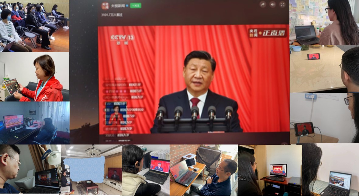 阿拉伯语系党支部书记工作室(第二批全国高校“双带头人”教师党支部书记工作室)负责人付志明组织阿语系党员师生于外文楼206会议室集中收看了开幕会现场直播。师生聚精会神地聆听报告,力求深入学习领悟会议精神。集中观看结束后,师生纷纷表示报告振奋人心、催人奋进。学院其他党支部结合实际情况分别以线下、线上相结合的方式组织观看学习。