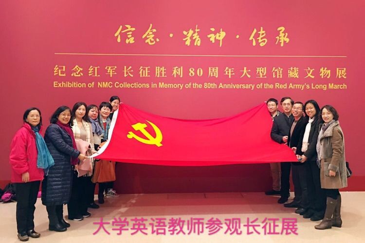 为配合北京大学校党委部署开展的“两学一做”学习教育活动,2016年10月30日(周日)上午,外国语学院大英研英语言所党支部的党员和部分非党员老师,在院党委副书记李淑静老师和党支部书记马乃强老师的带领下,赴国家博物馆参观“信念·精神·传承——纪念红军长征胜利80周年大型馆藏文物展”,以现场学习的方式开展特色党日活动和“两学一做”学习教育活动。
