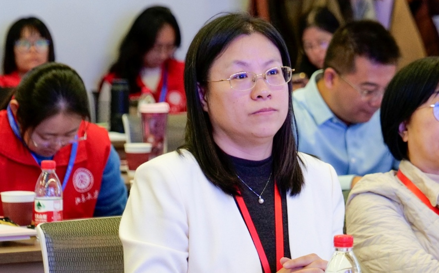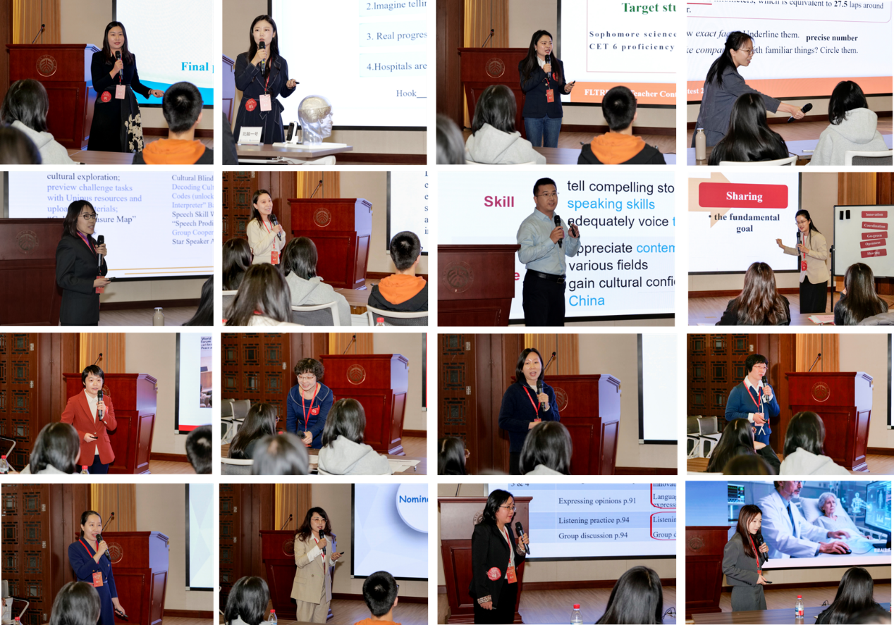 赛后,提问评委、中国人民大学外国语学院副院长田丽丽就各参赛团队的精彩表现进行点评。田教授首先对8支参赛团队扎实的语言功底、课堂掌控能力以及对教学的热爱与热情表示赞赏,对教师们在有效使用教材、变革教学范式、融合价值引领与素养培养方面付出的努力表示肯定。随后,她围绕“新时代”与“新科技”两个背景,提出三点建议:在教学设计层面,应思考如何从培养非即时交际能力向培养即时交际能力转变,探索AI赋能下的线上线下融合教学模式;在教材使用层面,要深刻认识教材在系统性、科学性和价值引领上的不可替代性,思考如何利用线上资源“活用”教材并“超越”教材;在教师身份层面,应在AI时代重塑角色,不仅要做知识的传递者、学习的设计者和引导者,更要致力于培养学生高质量的思考、高水平的表达和高标准的判断能力,推动英语课堂在新时代焕发新的生命力。