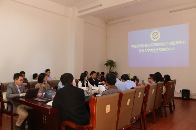 下午,团队师生来到云南大学国际关系研究院暨中国周边外交研究省部共建协同创新中心,与中心首席专家、云南大学国际关系研究院院长卢光盛教授,副院长李涛副研究员及刘磊教授、邹春萌研究员、祝湘辉研究员、孔鹏副研究员、胡潇文副研究员、钟小鑫副研究员等进行了交流座谈。双方首先介绍了各自的学科建设、人才培养、研究成果等,接着围绕缅甸问题、南亚研究、西亚非洲研究等议题进行了探讨。