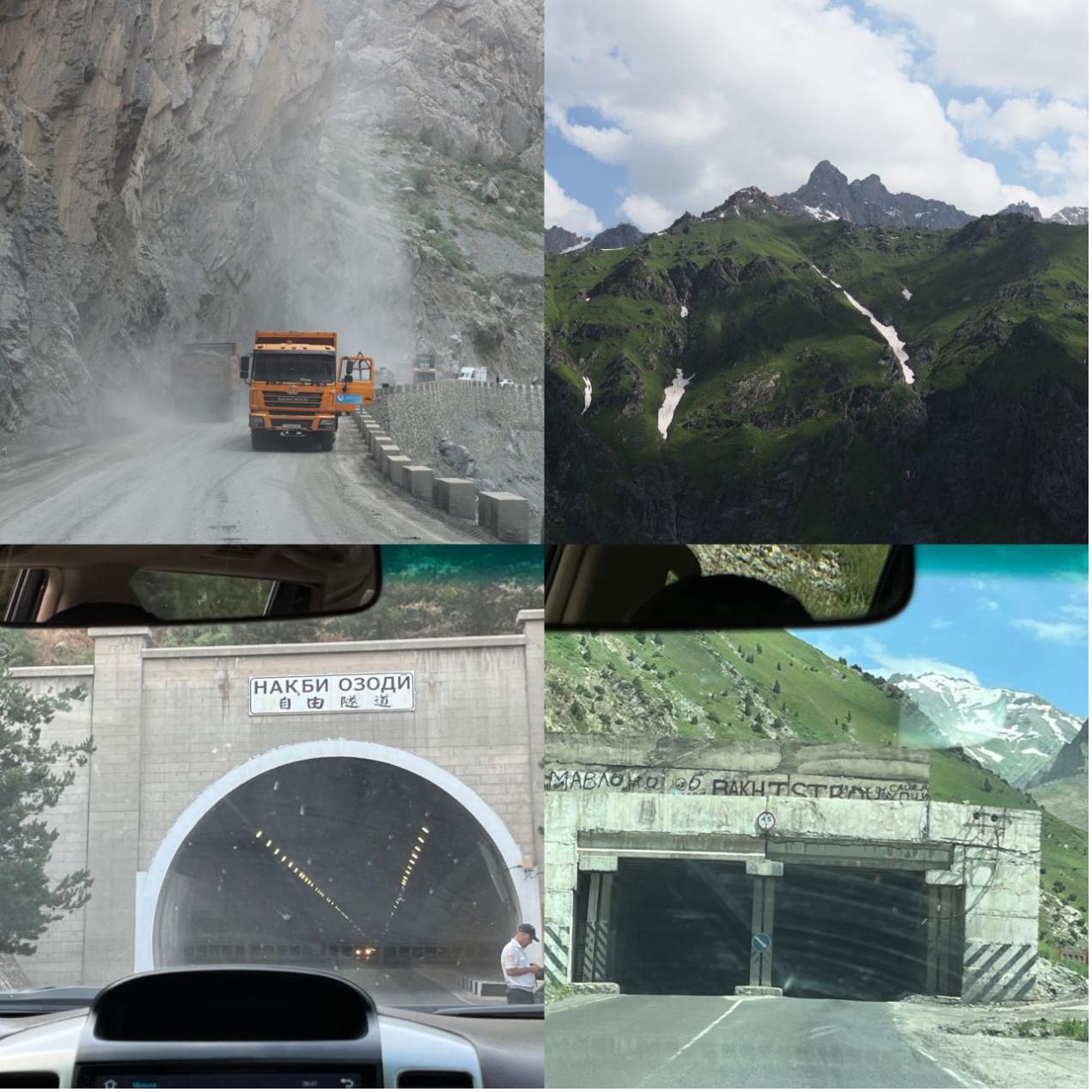 图10 塔吉克斯坦南北公路、沿途群山冰川、中国企业援建的自由隧道、伊朗企业援建的安索布隧道
