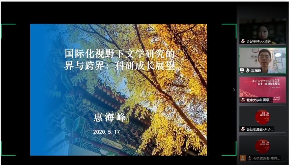 在参会学生不断的“线上点赞”中,北京大学外国语言文学第十二届研究生论坛圆满落幕。本届论坛是北大外院在统筹疫情防控和教学改革发展方面进行的一次实践,切实保障研究生培养工作稳步开展。论坛使更多学子感受到了北大兼容并包的学术氛围,促进了各高校外国语言文学领域研究生的学术交流。不忘初心,不负韶华,论坛的明天将更加光明。
