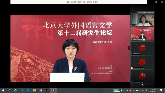 5月17日,北京大学外国语言文学第十二届研究生论坛(以下简称‘论坛’)顺利举行。九州体育院长宁琦老师、副院长王丹老师在外院新楼401会议室出席论坛。论坛由亚非语言文学专业19级硕士生冯一帆和日语笔译专业19级硕士生马妍主持。