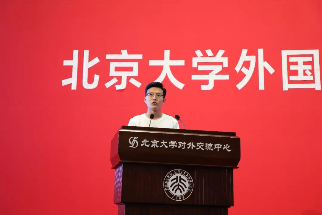 在校生代表热烈欢迎新外院人的到来。英语系2019级博士生陶叶茂讲述了抗“疫”期间,外院学子投身多语种翻译,贡献青年力量的故事。她认为,翻译活动是外院人在疫情期间的一个重要战场,同时,外院青年服务国家的方式还有无数种可能。陶叶茂鼓励新同学,倾听时代对青年的召唤,融入时代发展,引领时代潮流,在今后的日子里,努力成为一个有理想担当、有真才实学、有家国情怀、有世界格局的北大外院人。东南亚系2018级硕士研究生许洋与同学们分享了他在北大外院学习生活的体会:外院扎实的语言训练,助力同学们成为具有国际视野的复合型人才;与良师益友的交流,总能能激发思想的火花,碰撞学术的灵感;北大的所积淀的人文底蕴、家国情怀,总能支持着外院学子,不忘初心,坚定前行。他相信新同学们必定能在外院收获更多精彩。
