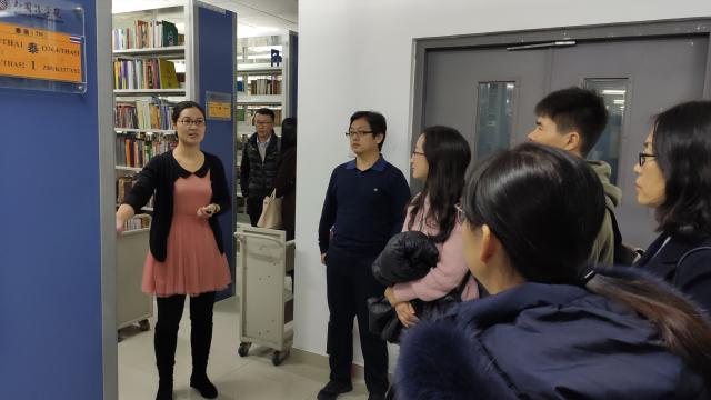 调研会结束后,外国语学院图书分馆馆长张晓雁向调研团介绍了外国语言文学学科的图书资料建设情况,并回答调研团提出的藏书来源及整理编码等问题。