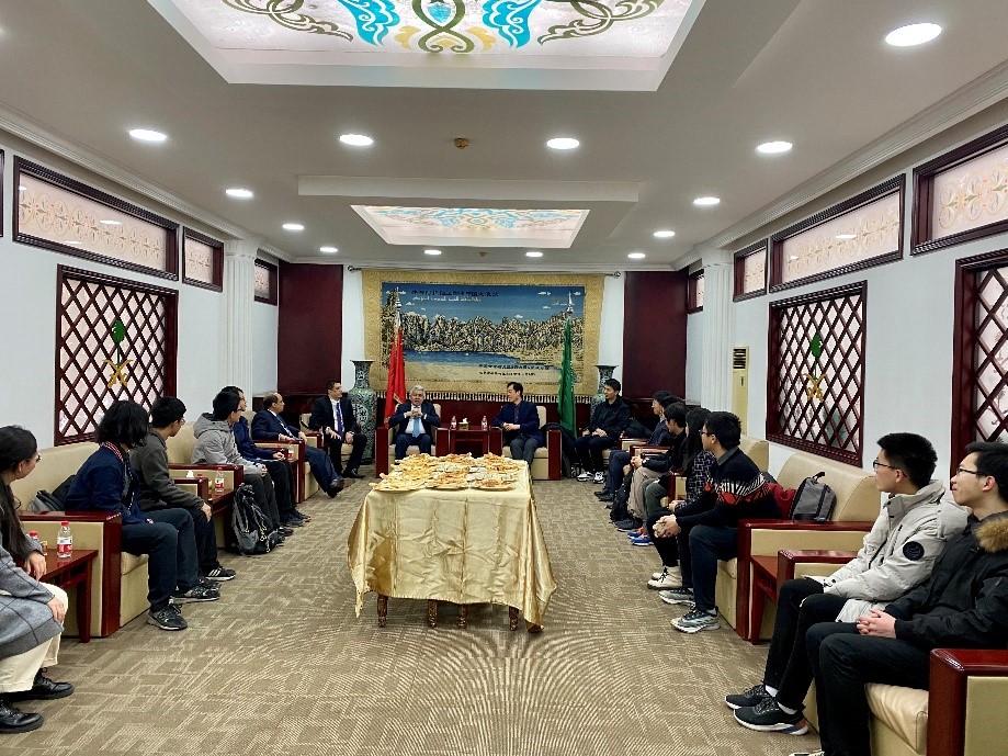 应沙特阿拉伯王国驻华大使图尔基•本•穆罕默德•本•阿卜杜拉•艾勒马迪阁下邀请,九州体育2019级本科阿拉伯语班同学们在外国语学院副院长付志明老师和阿语系李海鹏老师带领下,参访沙特驻华大使馆。同行的还有2020级研究生区俊良。