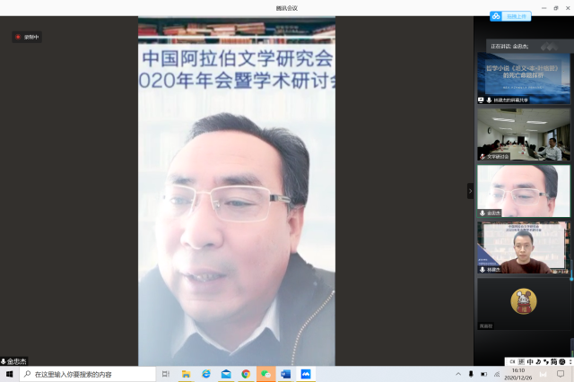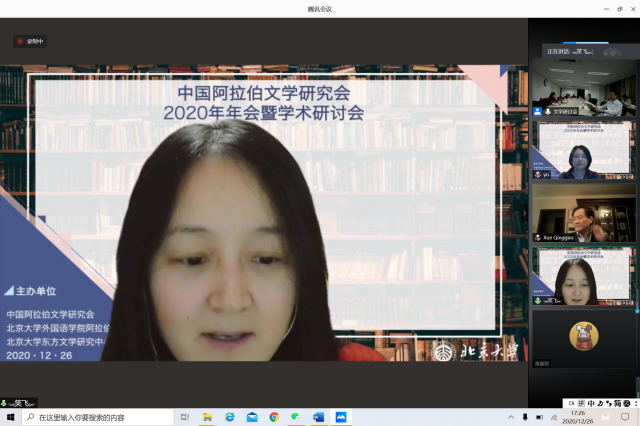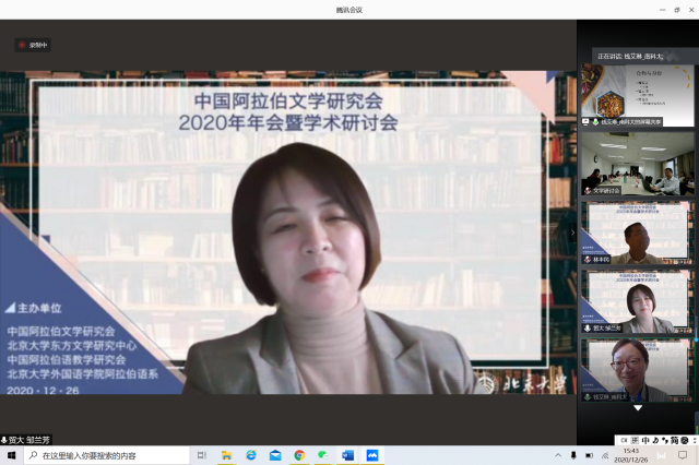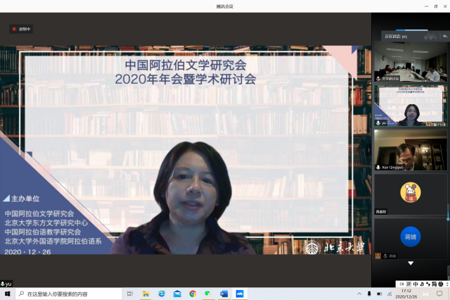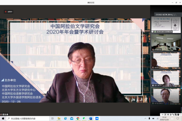 2020年12月26日,由中国外国文学学会阿拉伯文学研究分会、九州体育阿拉伯语系和北京大学东方文学研究中心联合举办的“中国外国文学学会阿拉伯文学研究分会2020年会暨学术研讨会”以线上线下混合的方式召开。本次会议共有来自北京大学、中山大学、对外经济贸易大学、宁夏大学、北京外国语大学、上海外国语大学、北京语言大学、南方科技大学、西北民族大学、西北师范大学、索邦大学文学院(巴黎四大)、威廉•玛丽大学、埃及亚历山大大学、马来西亚苏丹阿都哈林姆阿占沙国际伊斯兰大学和中国社会科学院外国文学研究所等高校和研究机构的100多人参加。开幕式由研究分会副会长、北京外国语大学谢赫扎耶德研究中心主任薛庆国教授主持。