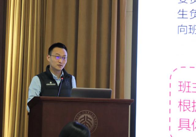 随后,分管学生工作的学院党委副书记王恒从学生工作层面,介绍了外国语学院学生工作团队及分工,从学生心理健康状况、学生日常管理相关事务以及学生活动开展情况,分析了新时期研究生培养面临的挑战。希望与各位教师携手一道,关注学生的成长,培育时代新人。