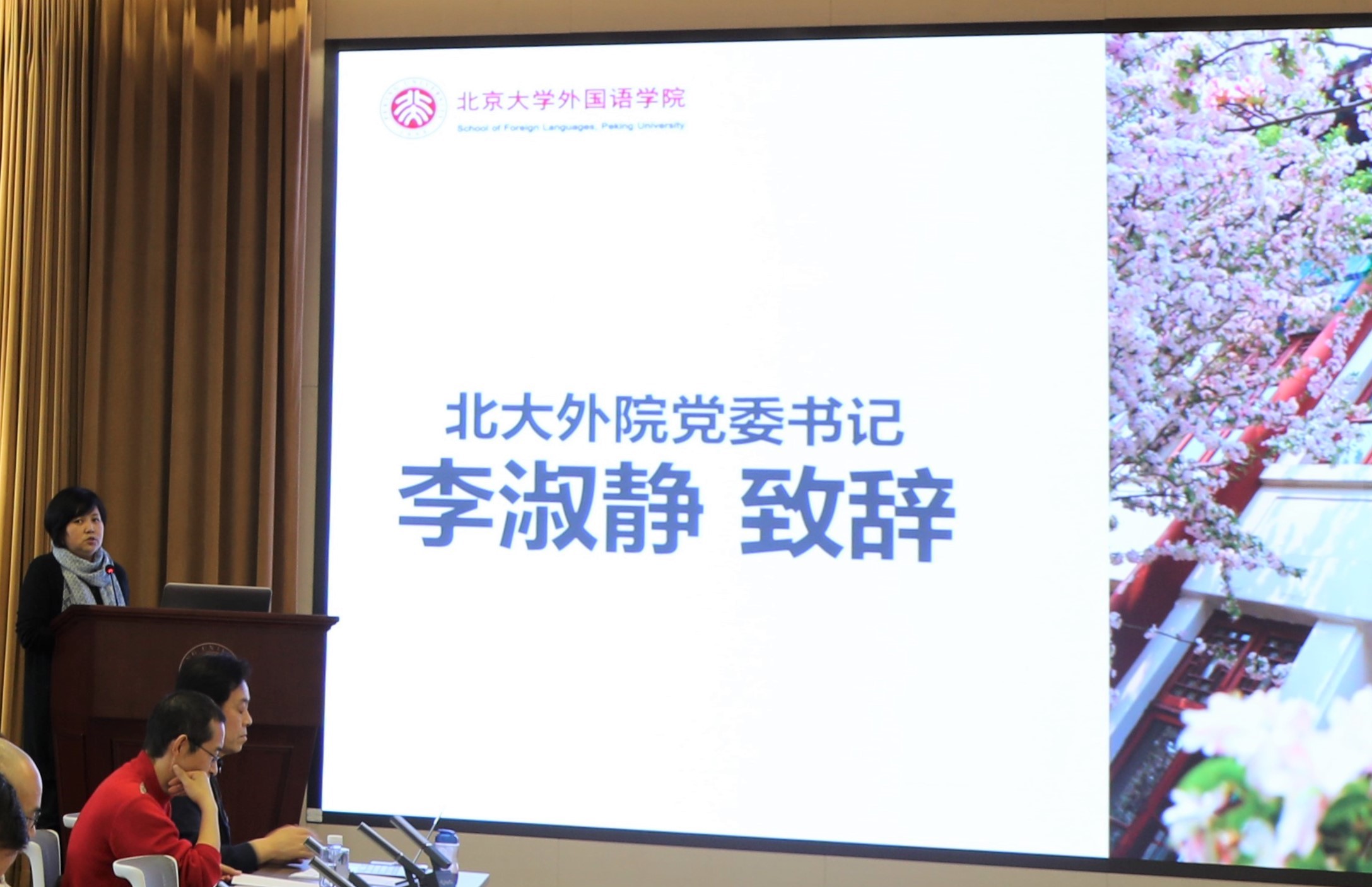 首先,外国语学院党委书记李淑静为会议致辞。李淑静书记谈到,2021年是国家“十四五”规划开局之年,也是北京大学追求高质量发展的关键之年,全院教师需要积极思考,准确把握北大外语的学科发展和外院人才培养的意义。希望大家通过此次会议,认真学习领会教育部和学校有关会议精神,了解和把握国内外教育教学的大环境和政策趋势,共谋学院发展,把服务国家、立德树人的根本任务,融入到日常各项具体工作当中去。