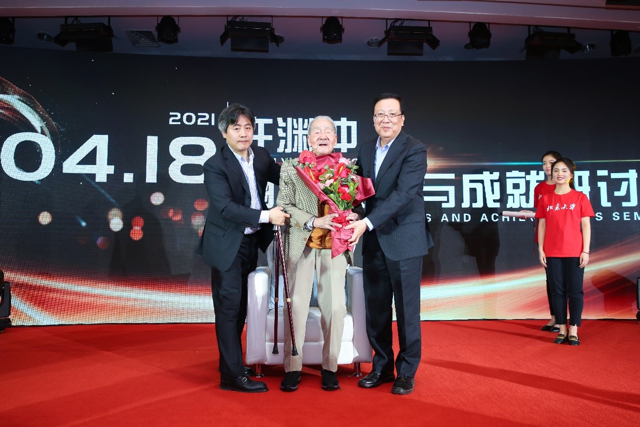2021年4月18日,我国翻译界泰斗、北京大学教授许渊冲先生迎来了他的百岁寿辰,北京大学举办“许渊冲先生翻译思想与成就研讨会”,庆祝先生百岁眉寿。北京大学党委书记邱水平,校长郝平,校长助理、秘书长、党办校办主任孙庆伟出席研讨会。会议由副校长王博主持。