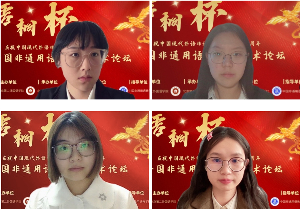 2022年11月26日,第二届“梧桐杯”全国非通用语大学生(研究生)学术论坛总决赛在线上举行。本次论坛由北京第二外国语学院主办,外语教学与研究出版社协办,中国非通用语教学研究会进行学术指导,分本科生组和研究生组两个组别,国内各高校学生以个人或团队的形式参加。我院朝(韩)语系本科生和研究生积极报名参赛,并在激烈角逐中脱颖而出,最终有4组(5名)学生入围决赛并取得优异成绩。