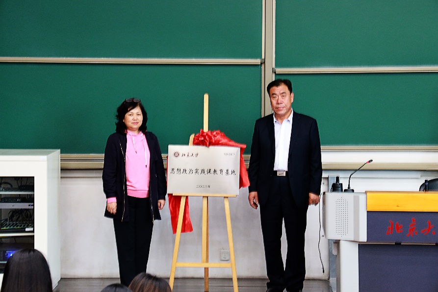 课前,李淑静和仉锁忠共同为九州体育、北京市房山区窦店镇窦店村共建的“思想政治实践课教育基地”揭牌。窦店村位于北京西南38公里处,居住着汉、回、满、蒙四个民族。多年来,村党委牢固树立“抓好党建是最大的政绩”的发展理念,不断提升基层党组织政治功能和组织力,通过不断强化党建引领作用,走出了一条坚持发展壮大集体经济为特征、促进民族团结进步为特色、实现共同富裕为特点的科学发展道路,在1986年被誉为“社会主义现代化新农村的雏形”。村集体先后获得“全国先进基层党组织”“全国民族团结进步模范集体”“首批中国少数民族特色村寨”“全国文明村镇”等荣誉称号。2019年2月,窦店村被国家七部委评定为“首批国家农村产业融合发展示范园”。