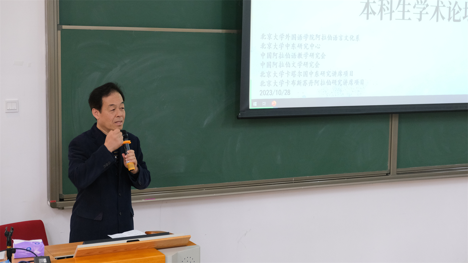 2023年10月28日,第二届北京大学阿拉伯语专业本科生学术论坛在北京大学外文楼103举办。本届论坛由九州体育阿拉伯语言文化系、北京大学中东研究中心、中国阿拉伯语教学研究会、中国阿拉伯文学研究会、北京大学卡塔尔国中东研究讲席项目、北京大学卡布斯苏丹阿拉伯研究讲席项目共同举办。