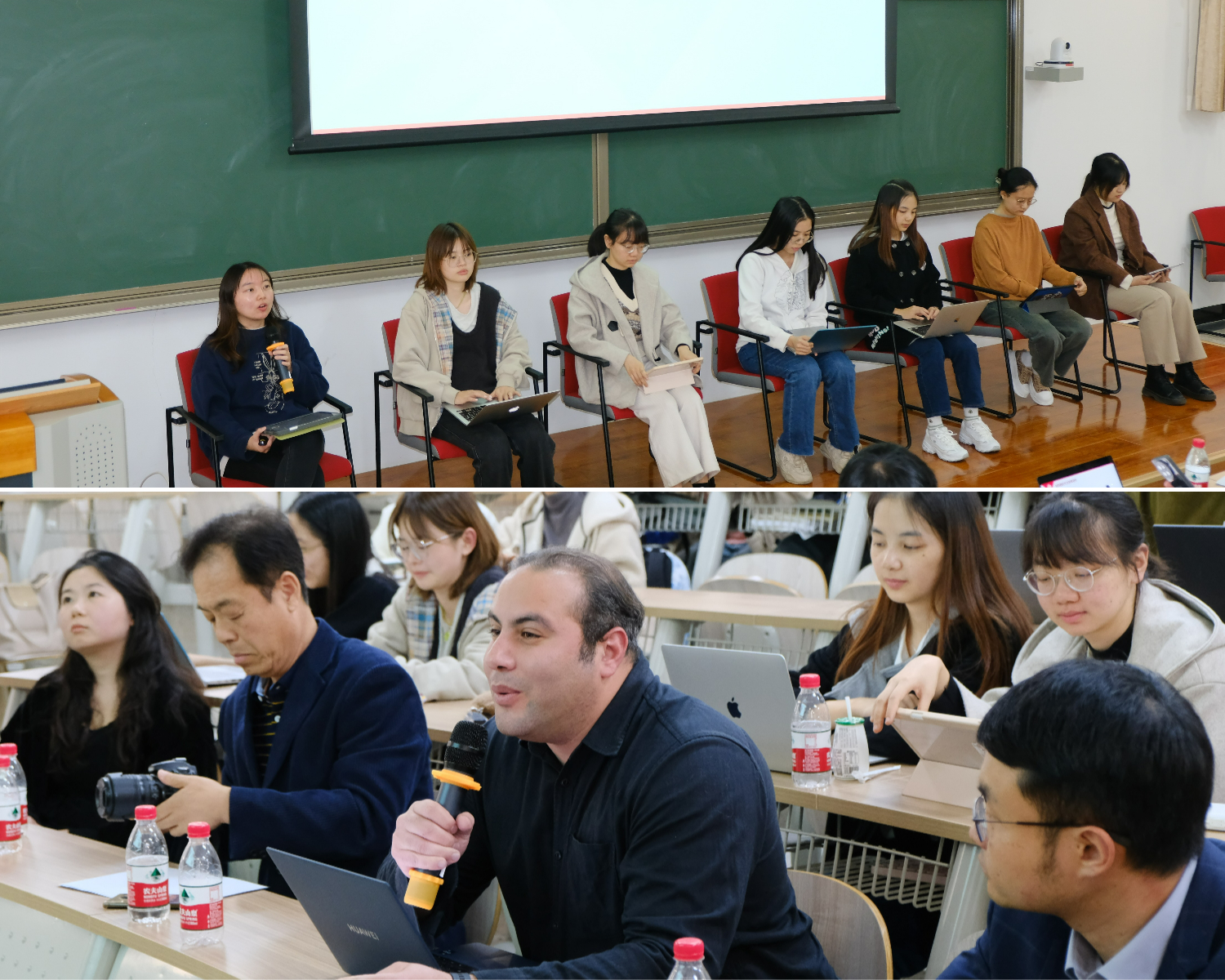 圆桌座谈环节,阿拉伯语系本科生许政哲就本科生科研项目《沙特阿拉伯的非洲政策》作报告。他分别从非洲对沙特的战略意义、沙特在非洲实施的具体政策、实施政策过程中面临的问题和挑战三个方面进行分析,分享了自己的研究框架与思路。承行健分享挑战杯跨学科项目《从法律实践的角度看中国在沙特新能源市场的机遇和挑战》。他结合自己的参赛经历,从选题背景、研究方法、研究过程、研究成果四个方面汇报了项目成果,并总结了经验教训。本科生陈佳琪、李钰滢分享她们参与挑战杯正赛项目《有为还是无为?——伊拉克什叶派宗教学者西斯塔尼政治作用研究》的经验,她们将此次经历总结为一次自我探索,思考了自己做学术研究的原因何在。阿语系博士研究生陆必纯、张若枫、丁恒瑞进行评议。