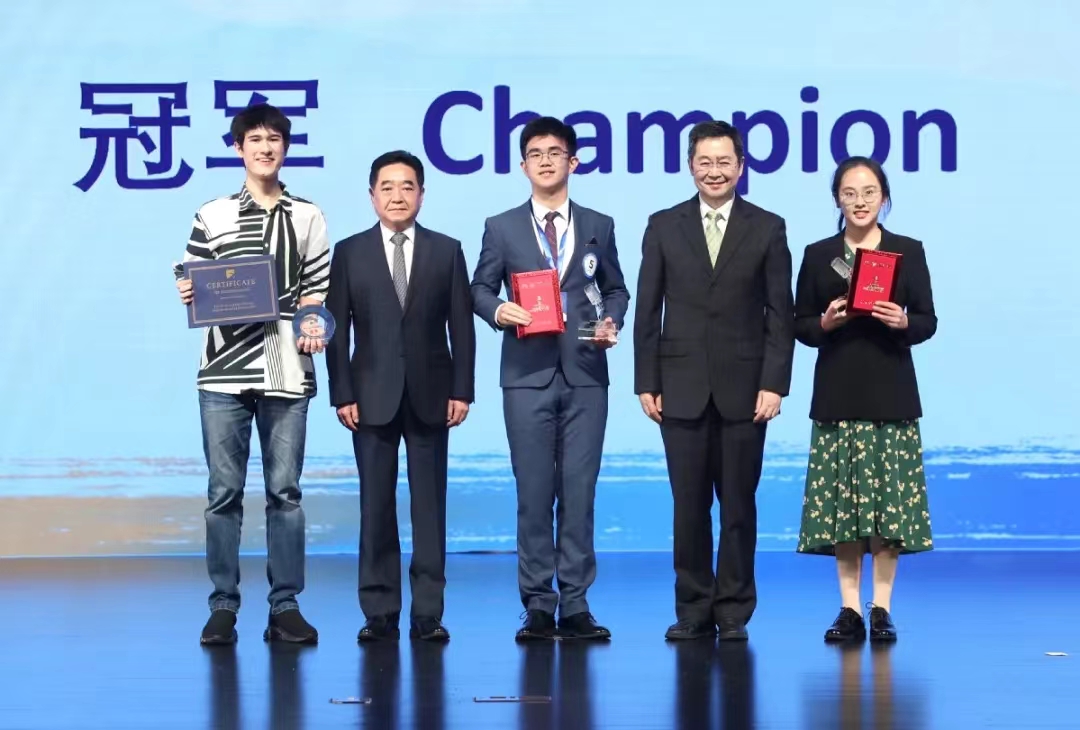 中国日报社社长兼总编辑曲莹璞和江苏省委常委、宣传部部长张爱军为刘宝祥颁发奖杯、奖状并予以鼓励。这是北大学子第一次获得“21世纪杯”全国英语演讲比赛的冠军。值得一提的是,在2022年的“外研社·国才杯”全国大学生英语演讲大赛(国家级A类学科竞赛)中,刘宝祥同学获得全国亚军,外国语学院的王雷老师也是刘宝祥的指导教师。