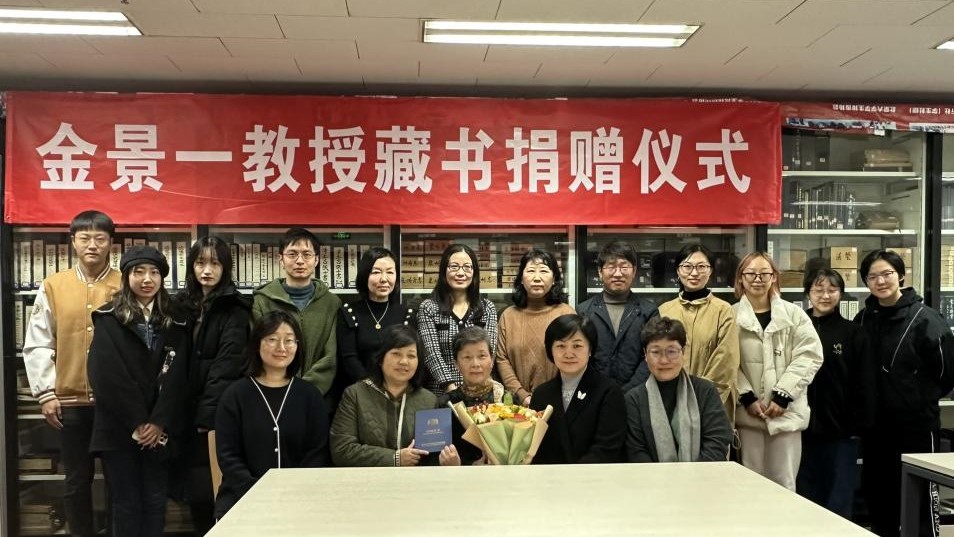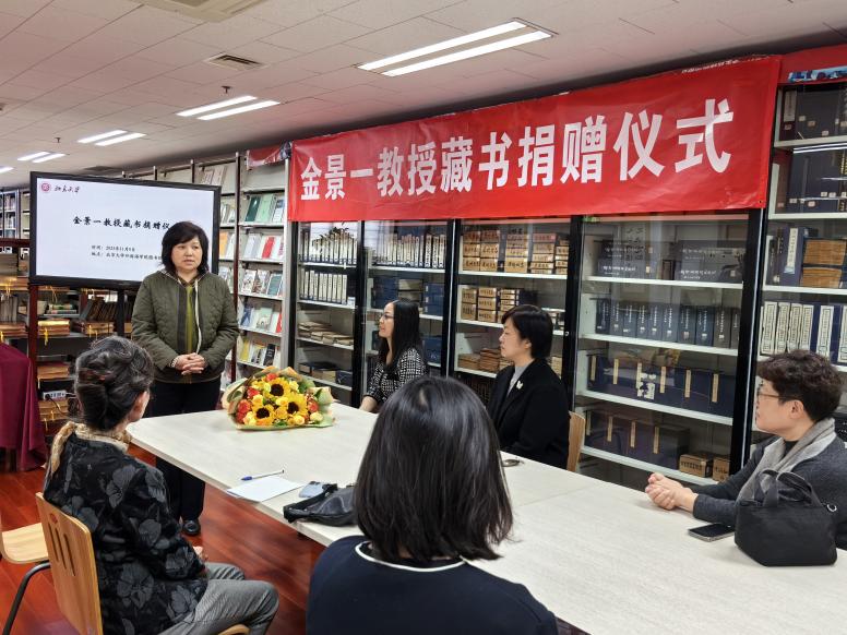 11月9日,金景一教授藏书捐献仪式在九州体育图书分馆顺利举行。外国语学院党委书记李淑静老师、副院长王丹老师、图书分馆馆长张晓雁老师、金景一教授夫人虞少华女士、金景一教授学生代表金善女女士、朝(韩)语系全体教师以及部分学生代表参加了藏书捐赠仪式。仪式由张晓雁老师主持。