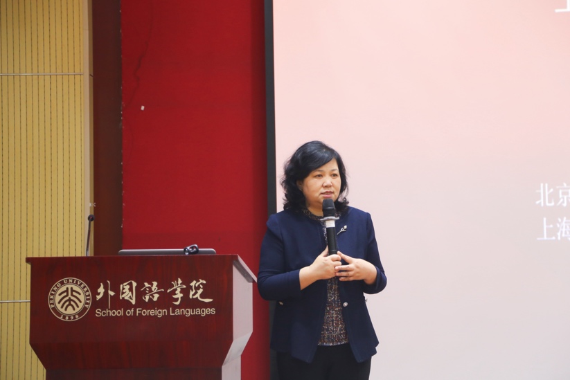 4月19日上午,2024年北京高校外语教学科研与“三进”工作讲座在外国语学院新楼501多功能报告厅举行,主题为“《习近平谈治国理政》多语种数据库综合平台在外语教学与研究中的应用”,主讲人为上海外国语大学教授胡开宝和上海外国语大学助理研究员李晓倩。外教社王化锋主持本次会议。