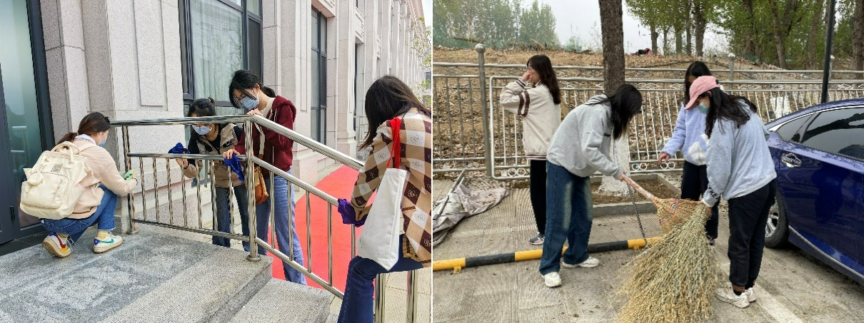 窦店村清真寺建筑恢弘精美,是华北地区最大的清真寺。通过视频导赏和工作人员讲解,同学们了解了窦店作为特色民族村的建设规划,窦店新清真寺的落成体现着近年来窦店的飞速发展,随着人口的迅速增长和首都高端现代制造业产业基地的建设,新建成的清真寺在保护原有古寺的同时更好地满足了当地穆斯林群众举行宗教活动的需求。在参观清真寺并了解其发展历程后,同学们分小组有序领取清洁工具,来到劳动区域开展清理打扫。劳动过程中,同学们干劲十足,积极发扬不怕脏、不怕累的精神,负责区域的杂草、碎石、残枝败叶都基本清除干净,不仅在汗流浃背中感受着劳动的趣味,更在劳动中增强了环保意识。