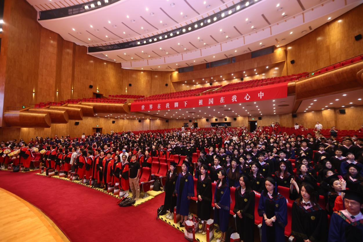 毕业典礼在雄壮的国歌声中正式开始。
