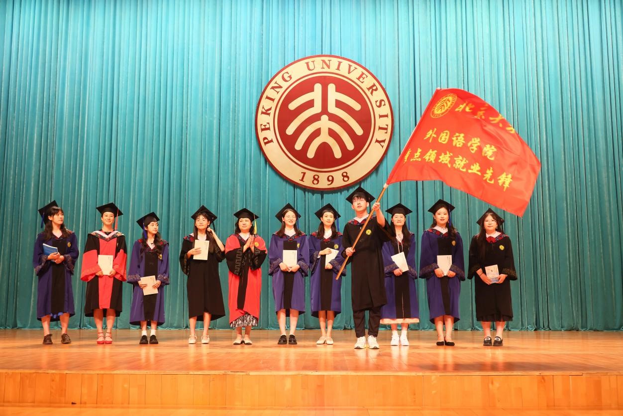 典礼行将结束,师生合唱《燕园情》。“燕园情,千千结”,联结的是所有外院人、北大人的心,不变的是真诚的师生情、同学情。“眼底未名水,胸中黄河月”,同学们将带着北大外院人的初心使命,奔赴天涯海角。